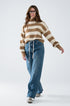 Subcategory: Sweaters . Collar: High collar neckline. Print: Stripe design. Fit: Relaxed fit. Style: Daily. Fabric: Soft knit. runs true to size. S.