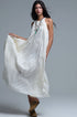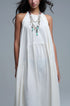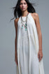Cream Halter Neck Maxi Dress With Seam Detailing
