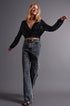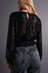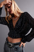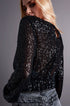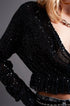Cross Over Cropped and Sheer Top With Sequins in Black