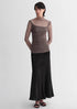 Mulberry silk fiber is paired with high-quality acetate fiber, which is delicate and smooth. The skin-friendly, delicate and uniform vertical ribbing texture increases the visual level. The comfortable, stretchy and slimming fabric is refreshing, cool, delicate and silky, presenting a high-end light luster.