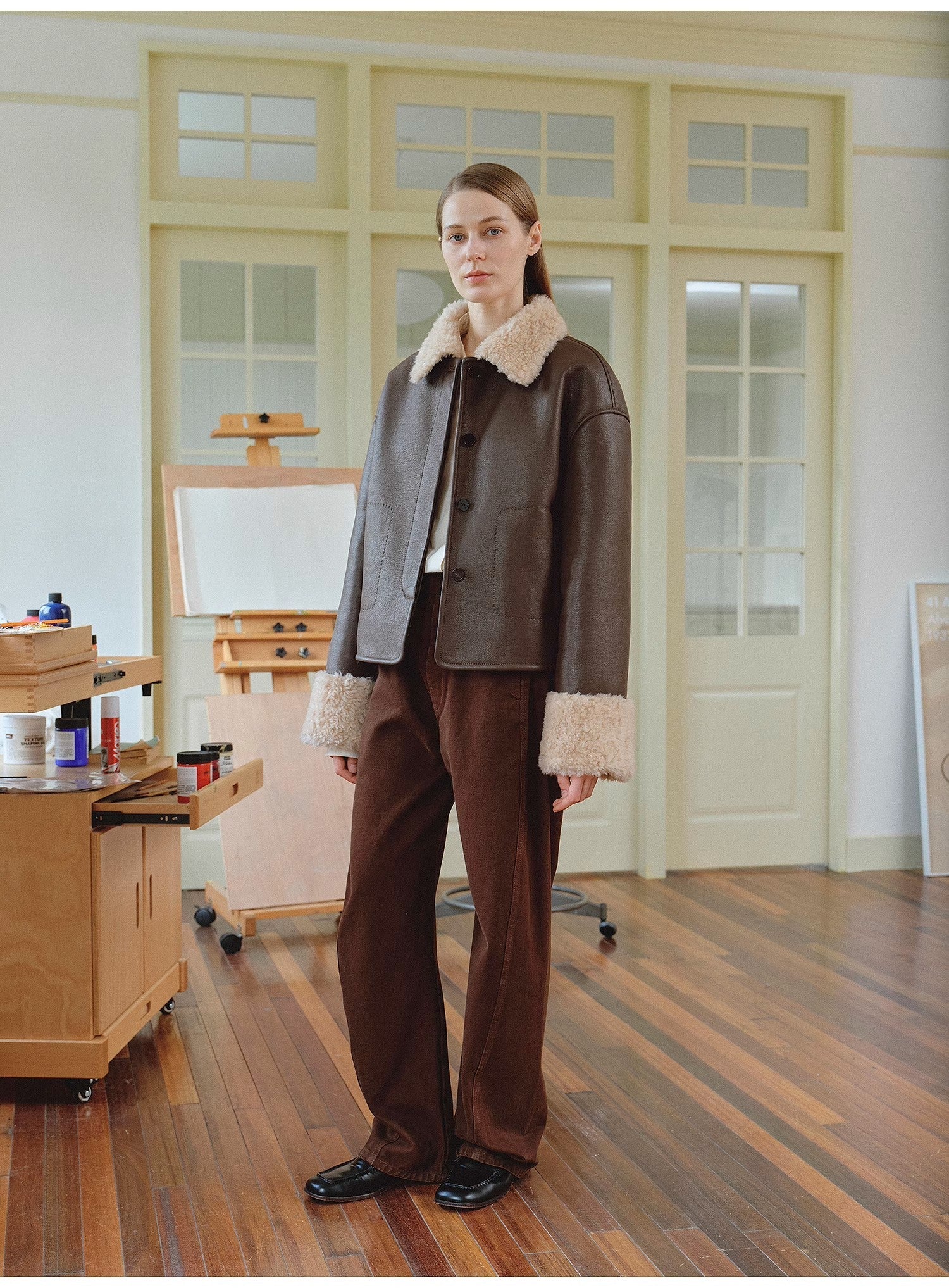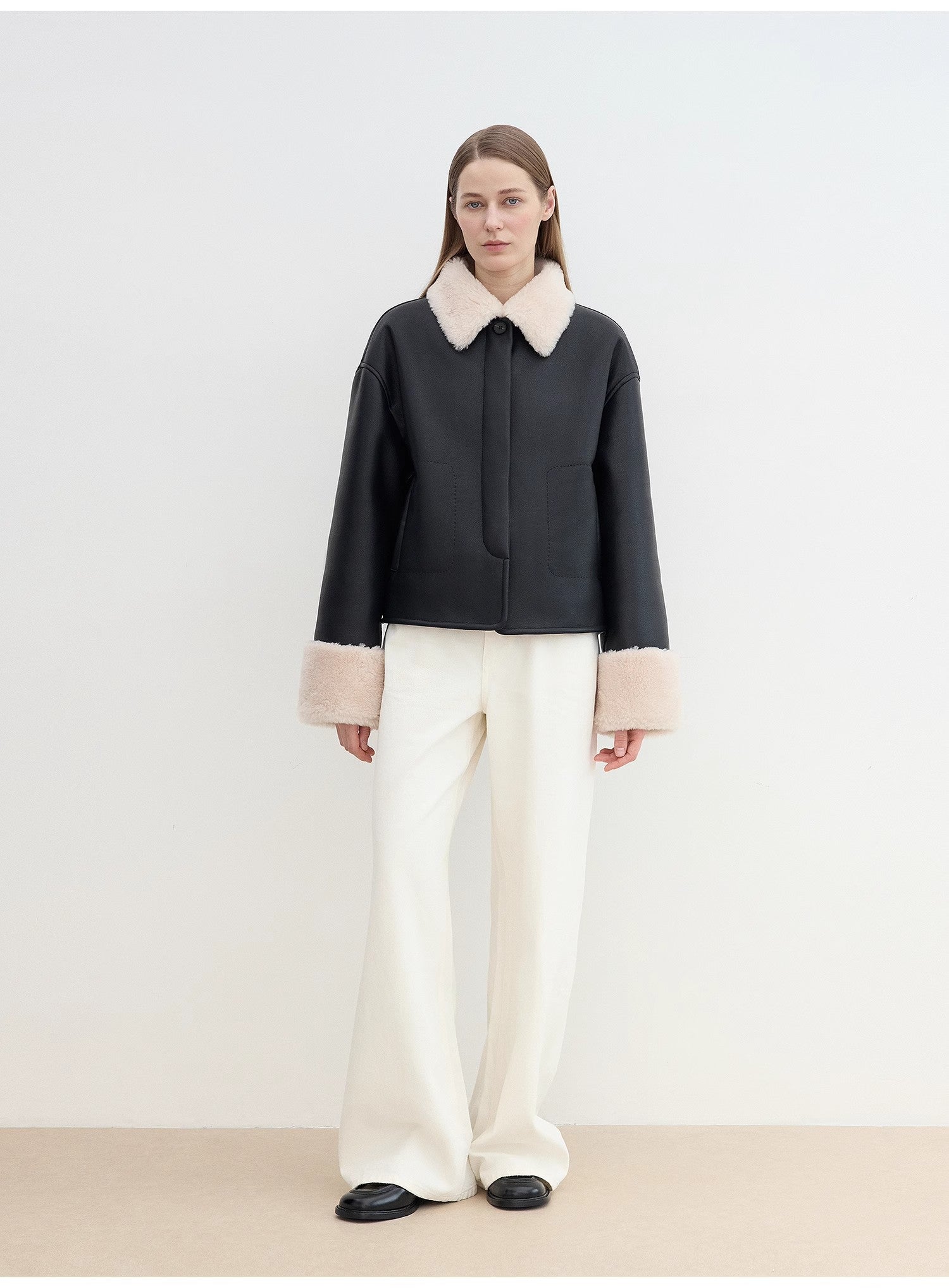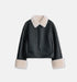 The interior of fine and thick sheepskin velvet is dense and warm, and the surface of fine velvet artificial compound suede is retro and fashionable. The loose straight version is slim and slim. The neat and short style can easily optimize the proportions. It is comfortable and versatile, looks tall and stylish, and the color-matching fur surface small lapels has a temperament. The wide raw edge of the cuffs echoes the details, making it warm comfortable, and rich in layers.