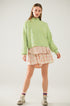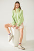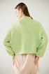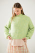 Fluffy Light Green Sweater With High Neck and Balloon Sleeves
