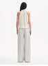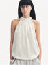 A-line halter neck vest with freely pleated hem The halter neck design of the collar accentuates the elegant swan neck and draws the attention to the shoulder and neck lines. The A-line body, combined with the pleated hem, naturally creates a sense of space, making it more figure-flattering and accommodating.