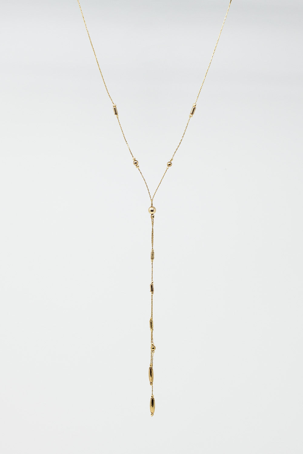 Long Gold Necklance With Golden Beads Throughout and Long Golden Tassle