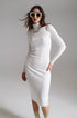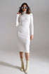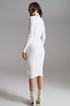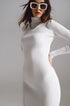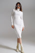 Midi Bodycon Knitted Dress With Turtle Neck in White
