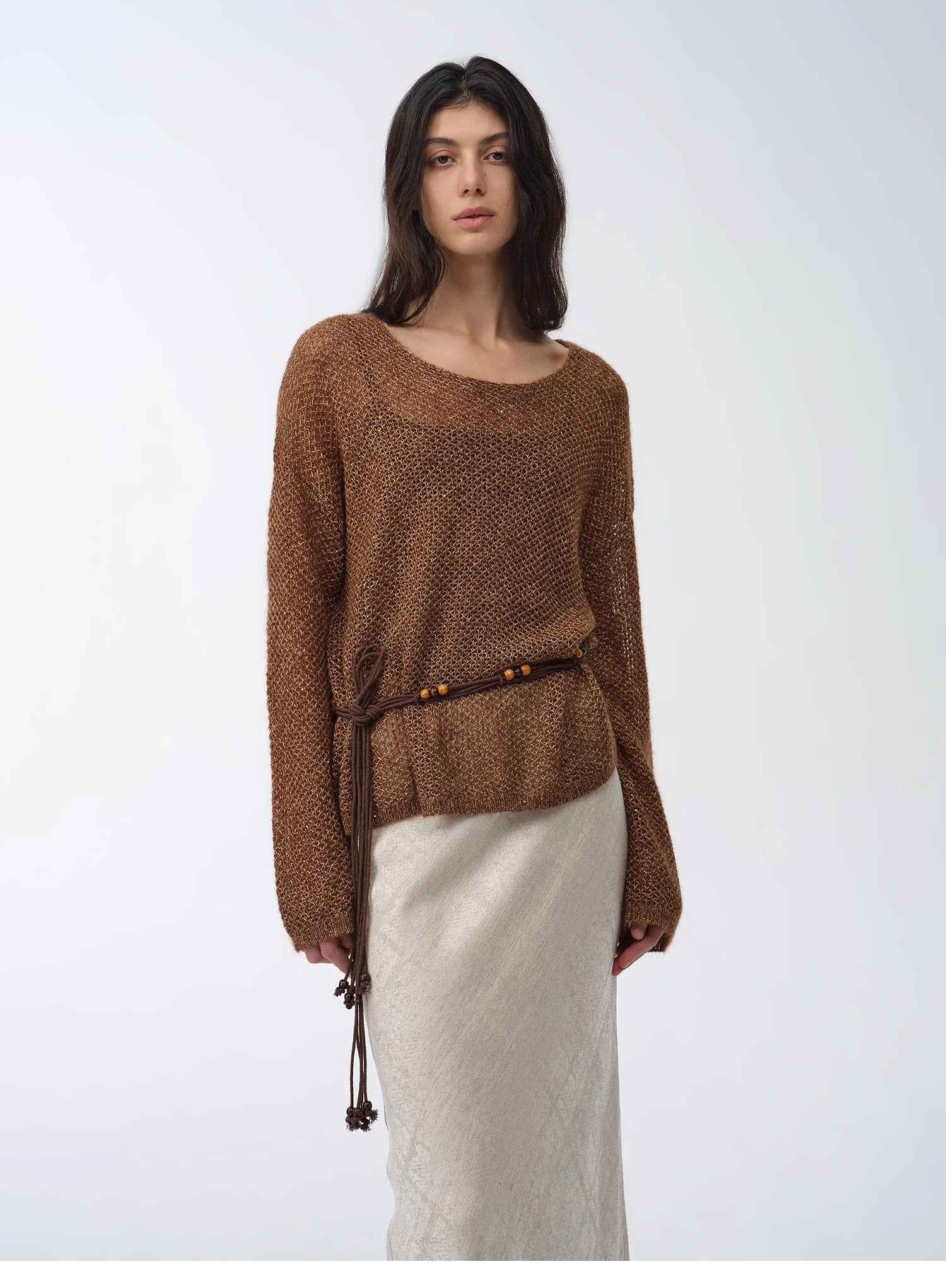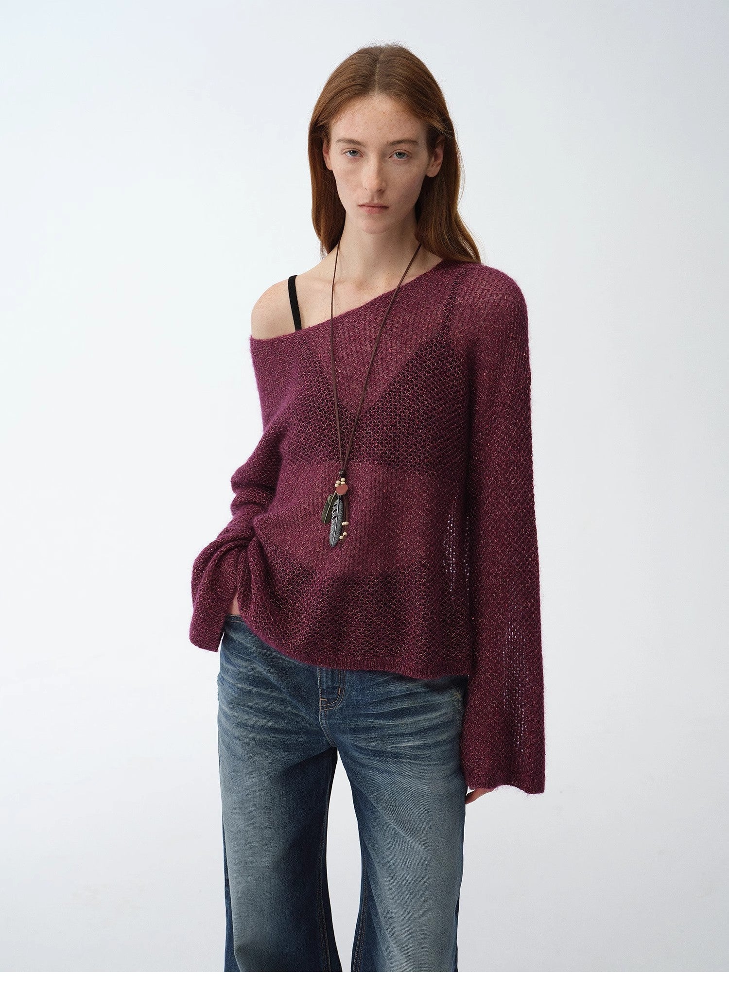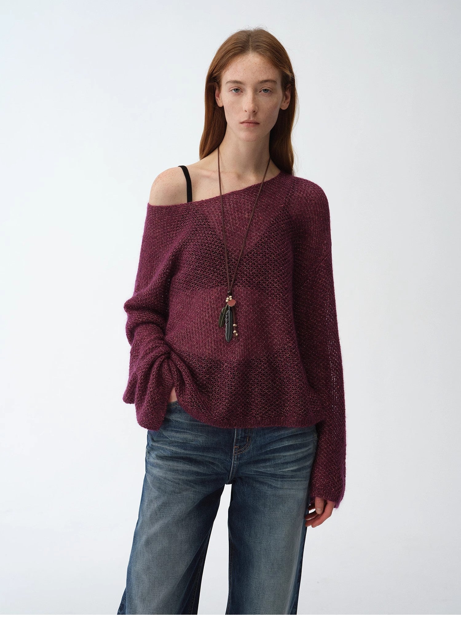 Mohair Sequin Knit Blended Hollow Oversized Sweater