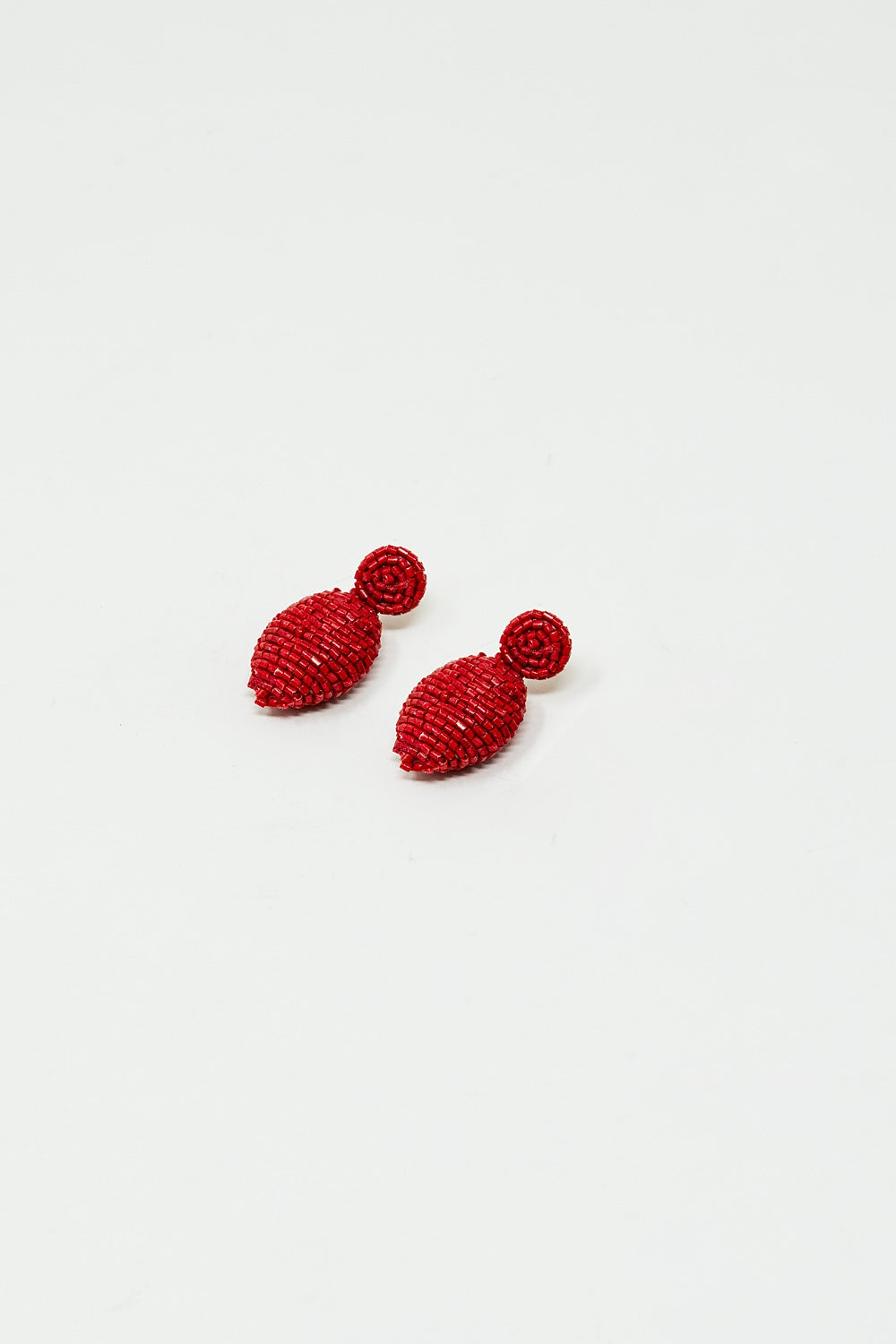 Oval Shape Beaded Earrings in Red