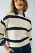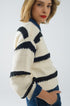 Relaxed Beige Jumper With Black Stripes