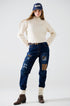 Relaxed Cream Ribbed High Neck Sweater