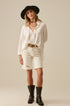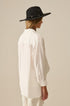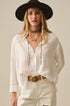 This white blouse is a wardrobe essential that you can't overlook. Featuring a button-down front and a pointed collar it stands out with its unique double-layer hem adding both texture and depth. The long sleeves and slightly relaxed fit ensure comfort without sacrificing style. Lightweight and breezy this blouse is not just a piece of clothing it’s a timeless statement of modern elegance that enhances any outfit.