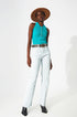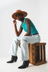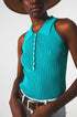 Ribbed Knitted Top With Polo Neck in Turquoise