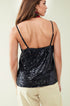 Spaguetti Strap Top With Deep V-Neckline in Navy Sequins