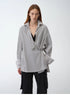 "Striped Fantasy" Casual Asymmetric Slanted Front Two-Wear Striped Long Sleeve Shirt