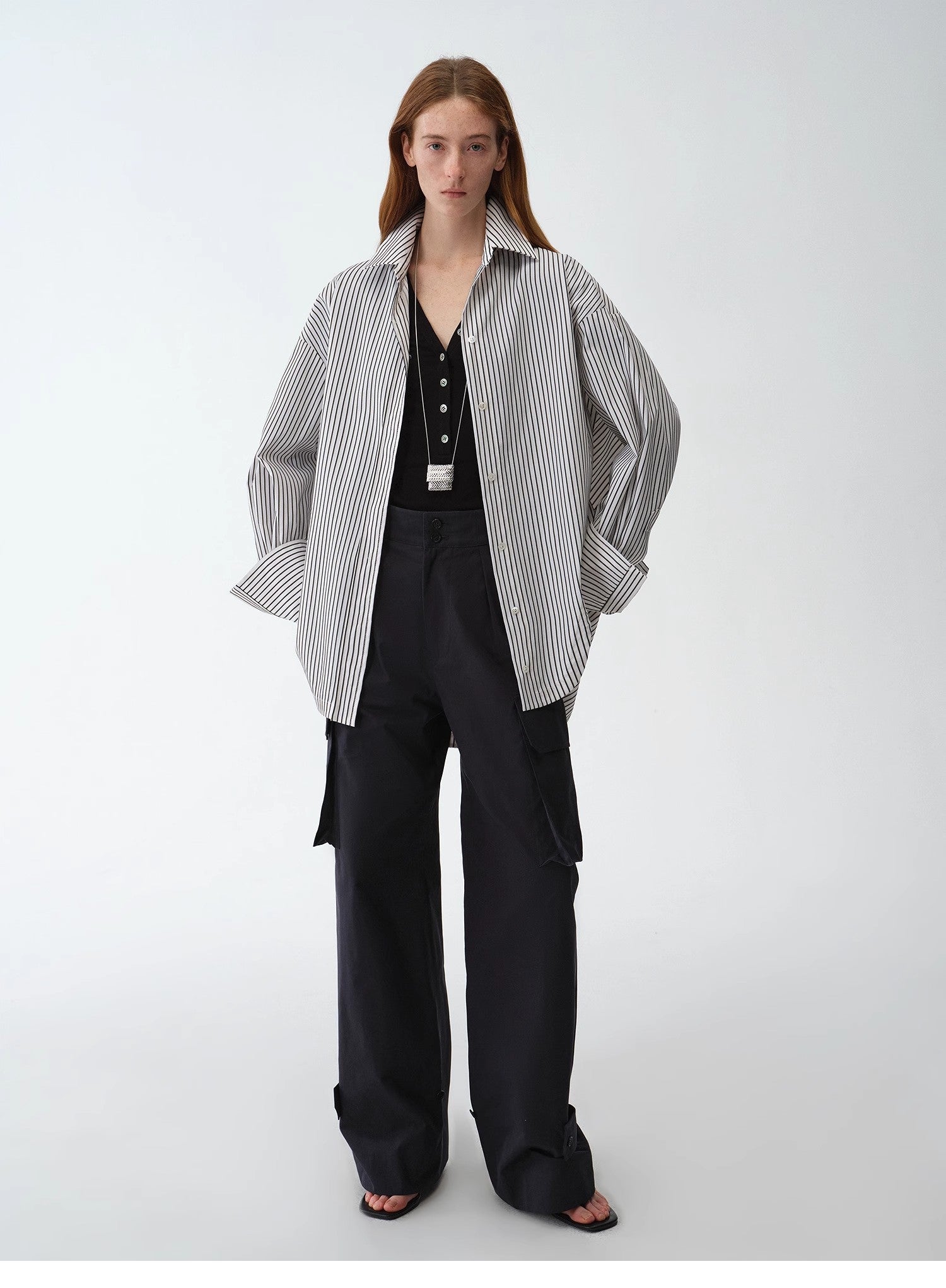 Asymmetrical slanted placket loose-fitting shirt