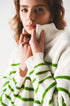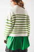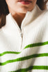 Striped Zip Up Collar Detail Sweater in Green