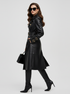 Premium Vegan Leather Finish: Crafted from a high-quality black vegan leather material, which provides a luxurious and structured finish, elevating the traditional trench to a level of Haute Couture.