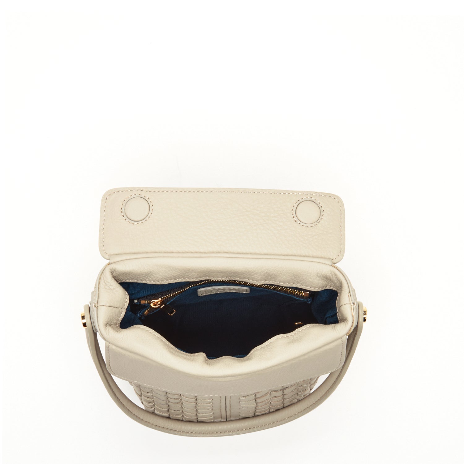 Woven Leather Bucket Bag Quilted Grayish Beige Crossbody Purse Women's Handbag